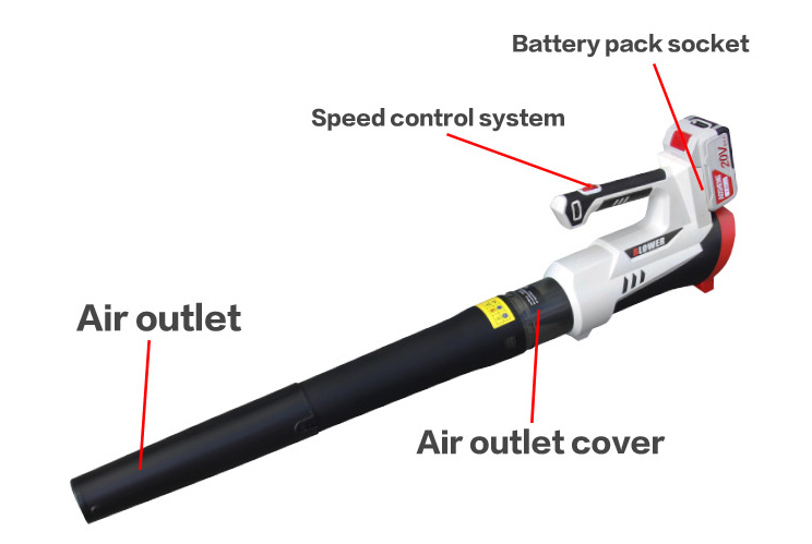 Casa / Prodotti / Attrezzi da giardino con batteria al litio / Ventilatore / H20CF02 Soffiatore per foglie 20V