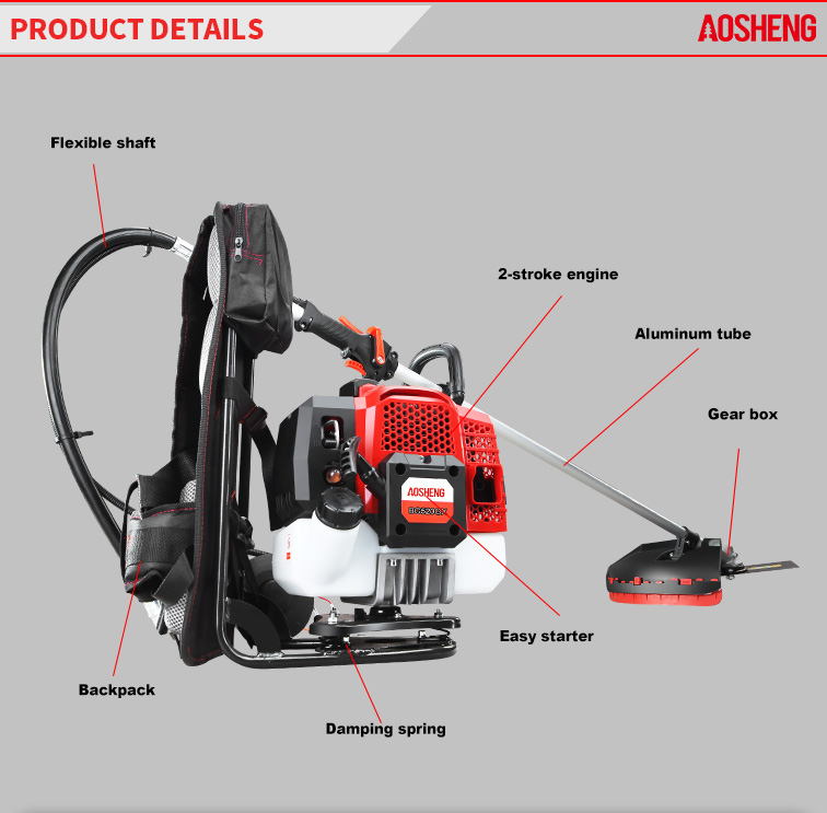 Motore ad alte prestazioni, la cilindrata è di 33 cc. L'uso professionale apre terre desolate Dimensioni del tubo 26 mm * 1,5 mm, albero flessibile resistente. La larghezza di taglio ...