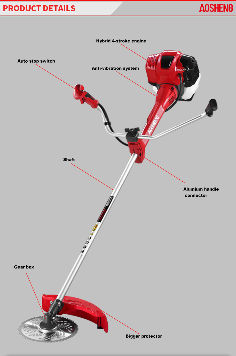 Motore ad alte prestazioni, la cilindrata è di 33 cc. L'uso professionale apre terre desolate Dimensioni del tubo 26 mm * 1,5 mm, albero flessibile resistente. La larghezza di taglio ...