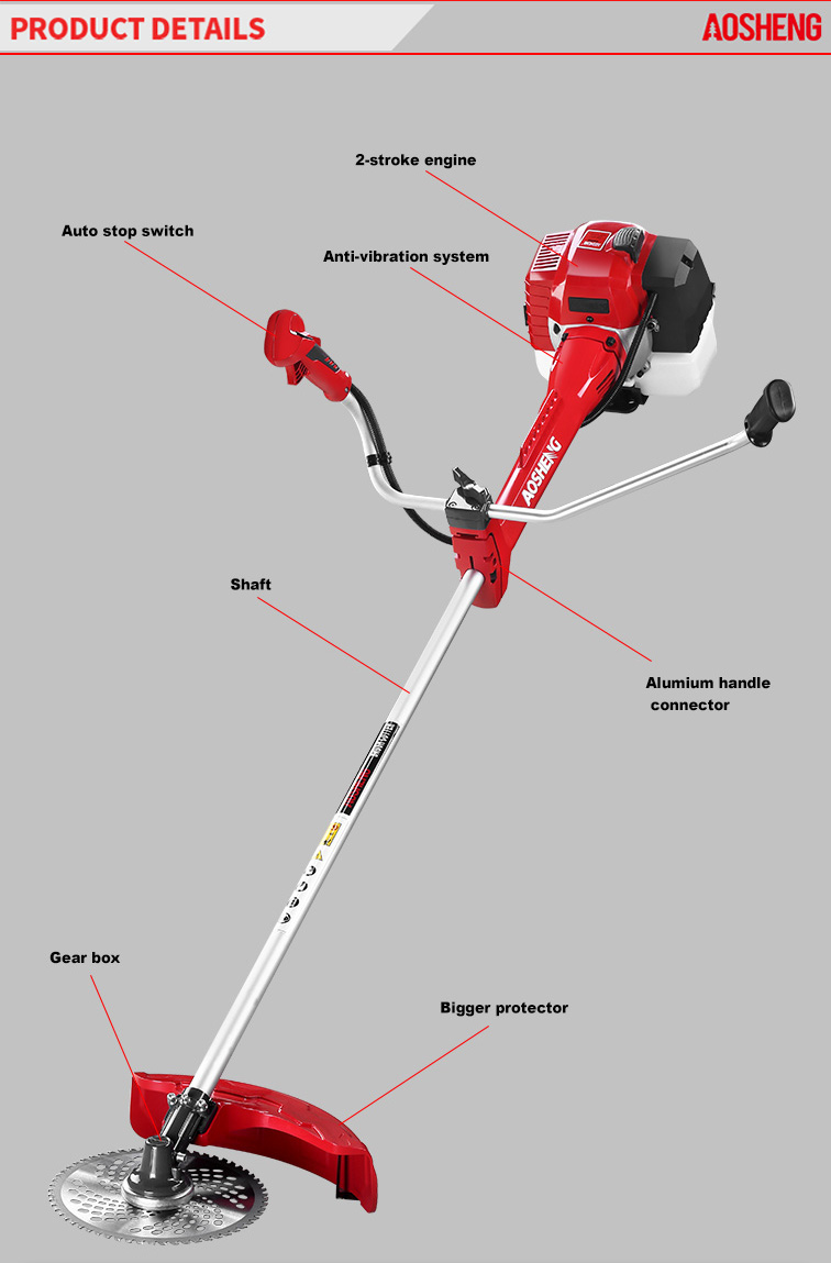 Motore ad alte prestazioni, la cilindrata è di 33 cc. L'uso professionale apre terre desolate Dimensioni del tubo 26 mm * 1,5 mm, albero flessibile resistente. La larghezza di taglio ...