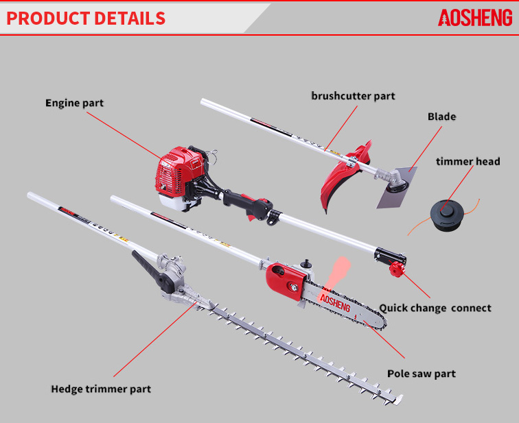 I decespugliatori multipli includono un tagliasiepi, una sega ad asta e una lama manuale per rifinitore.