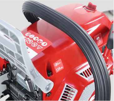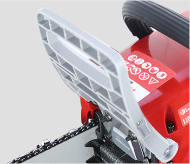 01DISPOSITIVO DI PROTEZIONE DEL FRENOLa risposta del freno è sensibile, migliorando la sicurezza del funzionamento. Il manubrio anteriore e quello posteriore sono un tutt'uno, con una struttura semplice e solida. La pressione sul dispositivo può fermare la motosega. | |